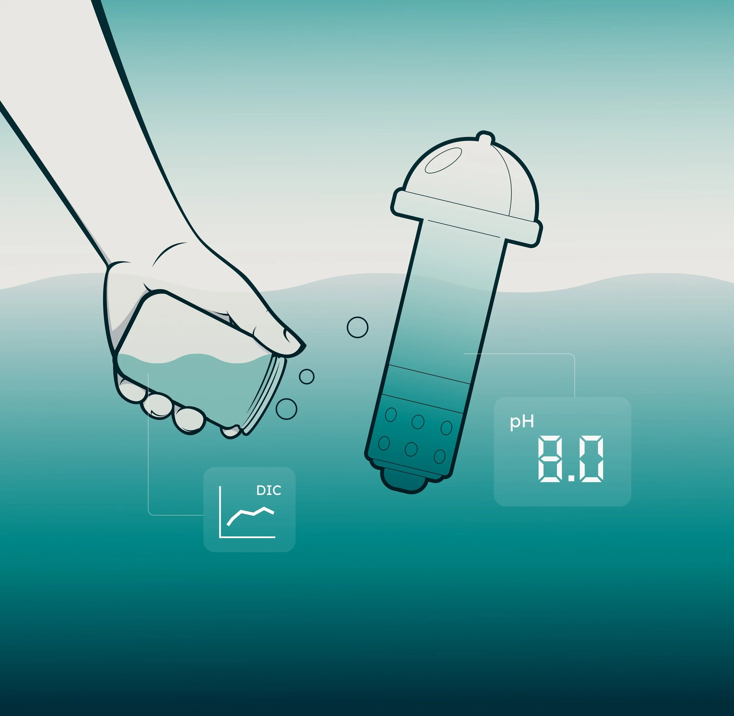 We measure several parameters that are important for determining gross removals of CO₂ in seawater. This includes continuous direct measurements of the removed volume of CO₂ from seawater, as well as sensor- and sample-based measurements of the seawater CO₂-chemistry at the points of water intake and discharge. We also measure seawater chemistry in the environment near project sites, to understand how the decarbonized seawater dilutes and spreads in the environment. Relevant parameters include pH and pCO₂, which can be measured using sensors, and dissolved inorganic carbon (DIC) and total alkalinity, which can be determined in the lab.